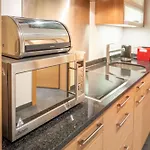 - ❓Is er een keuken beschikbaar in dit appartement voor gasten?Ja, dit appartement is uitgerust met een keuken en biedt ook een waterkoker, een koelkast en een oven aan.